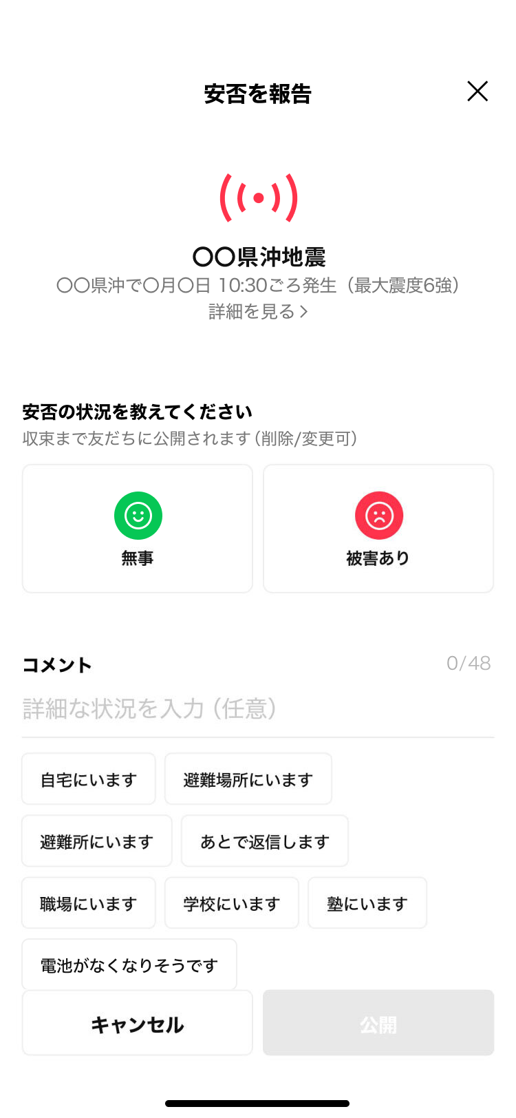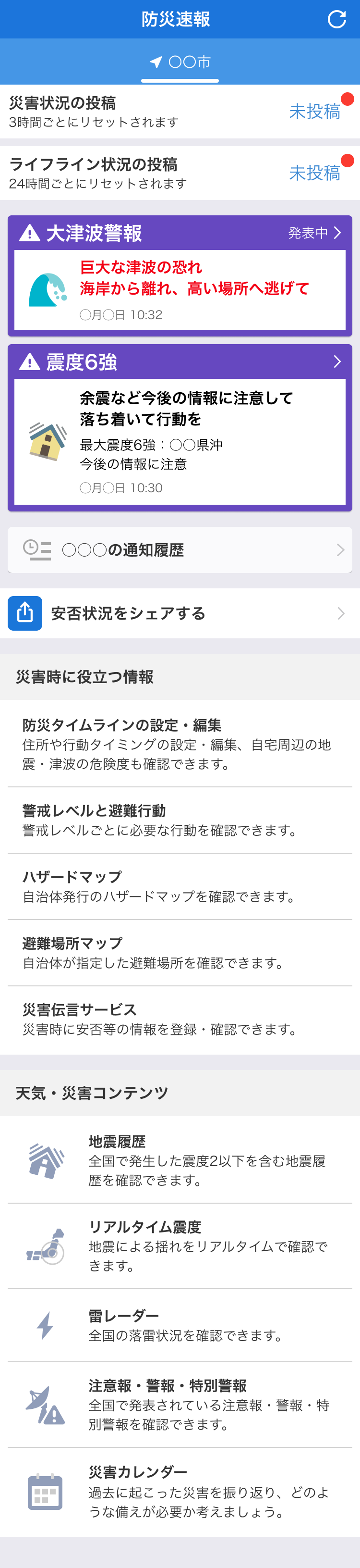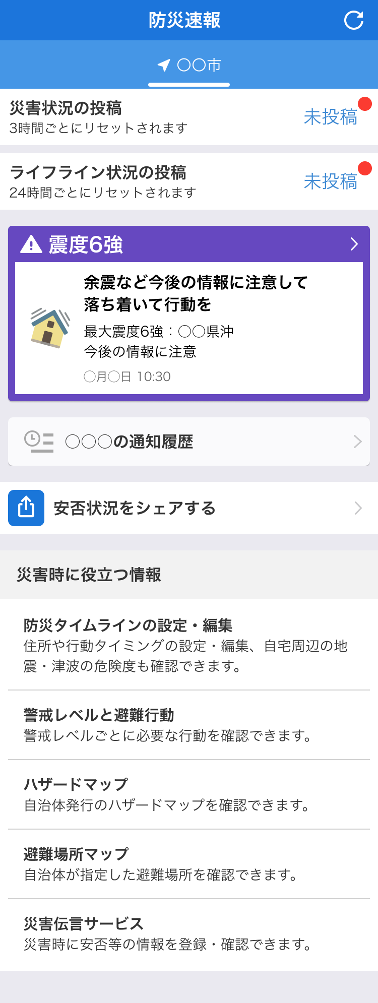 本シミュレーション内に出てくる地震情報やニュースは架空のものであり、実際に起こった災害を示したものではありません。